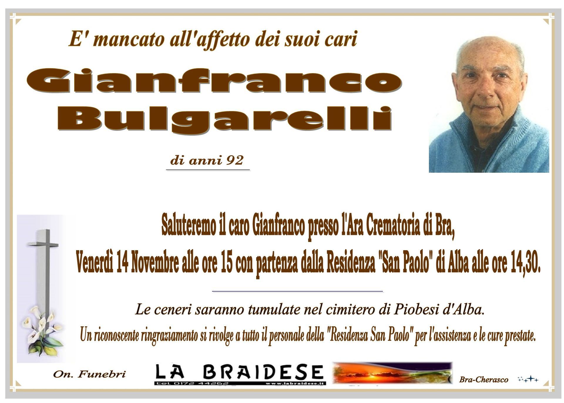 LA BRAIDESE ONORANZE E TRASPORTI FUNEBRI DAL 1965 di Longo Riccardo e C. S.n.c. - P.iva 00493100044 - Privacy Policy - Preferenze Cookie - Sito creato da etinet.it