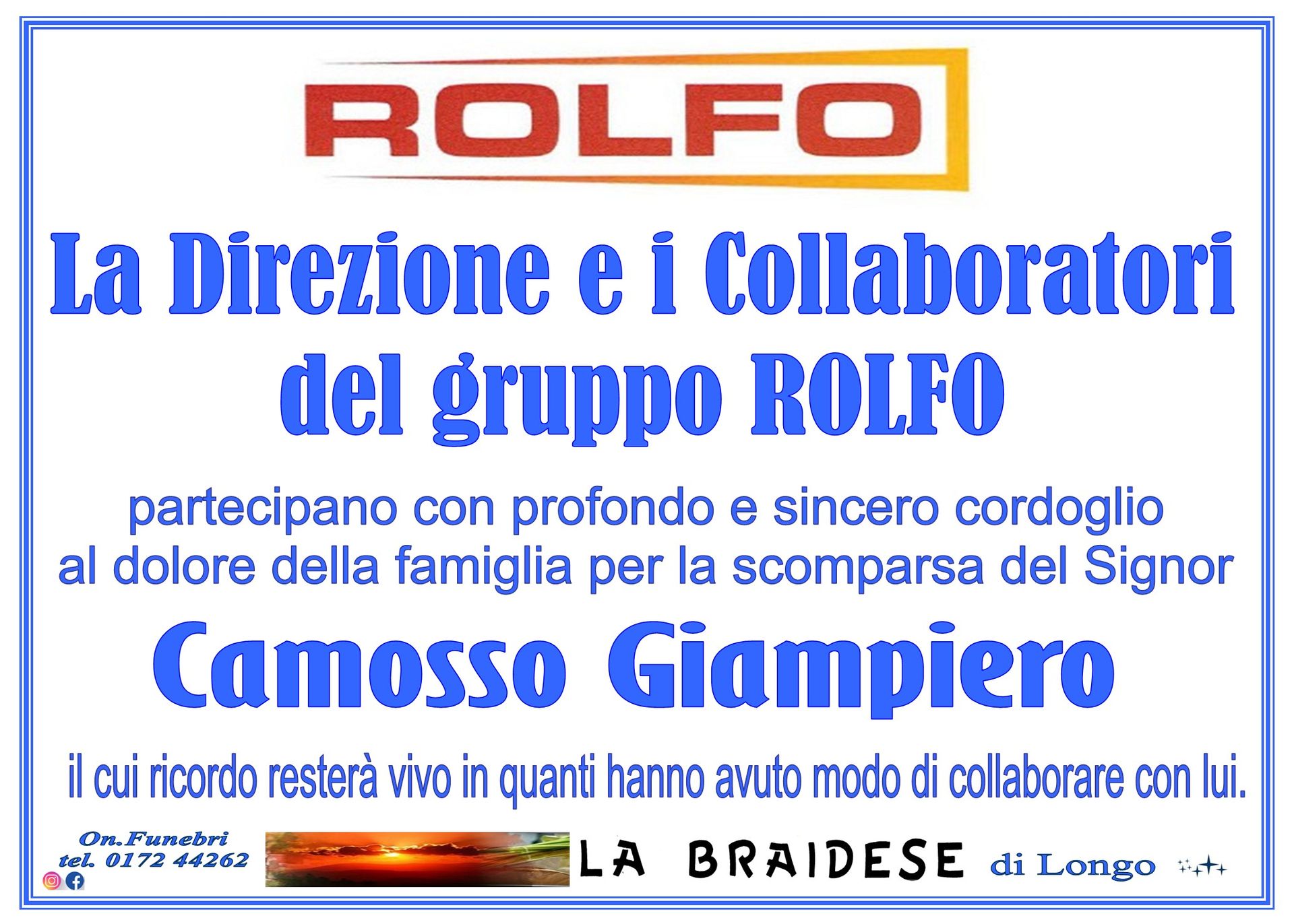 LA BRAIDESE ONORANZE E TRASPORTI FUNEBRI DAL 1965 di Longo Riccardo e C. S.n.c. - P.iva 00493100044 - Privacy Policy - Preferenze Cookie - Sito creato da etinet.it