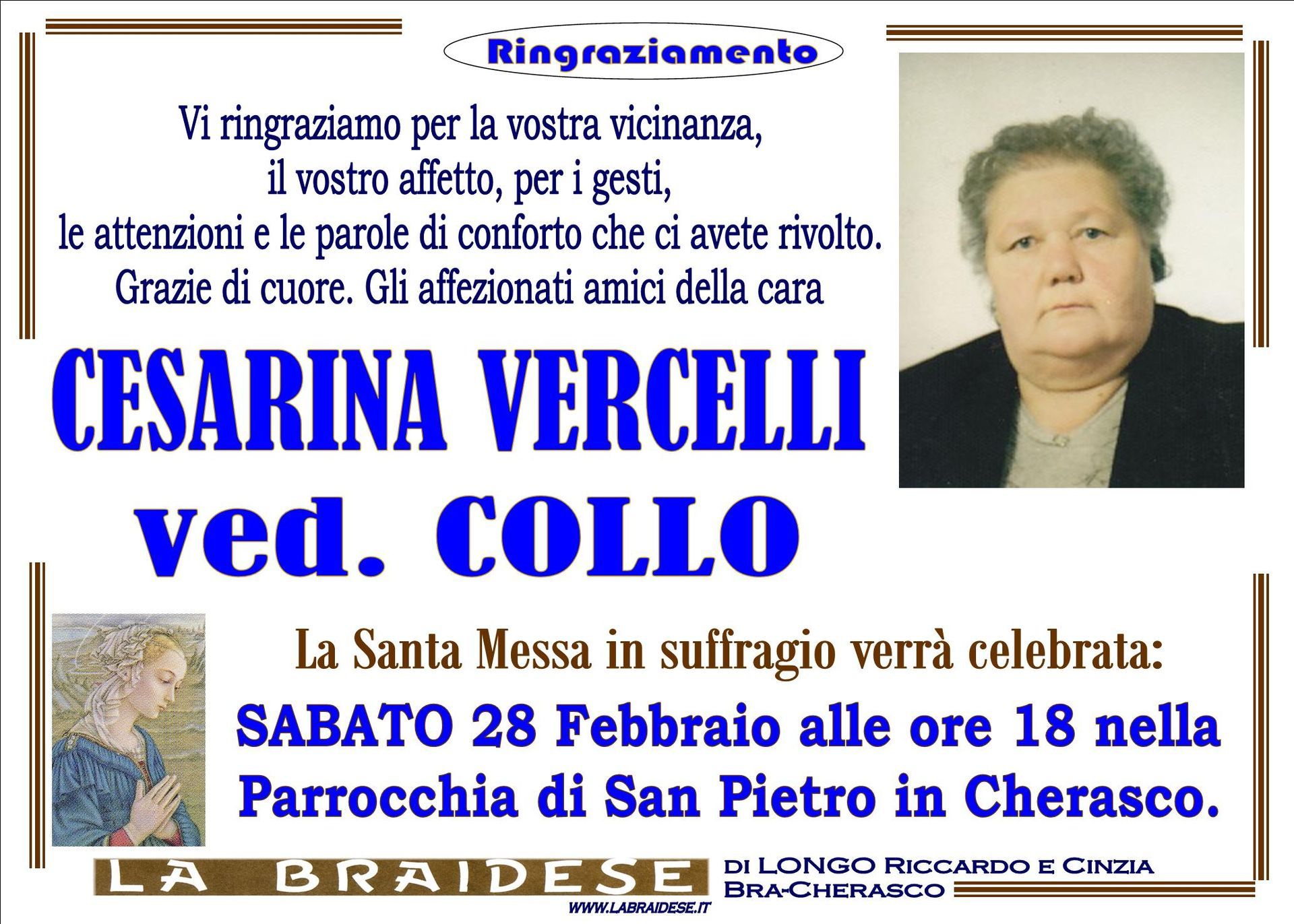 LA BRAIDESE ONORANZE E TRASPORTI FUNEBRI DAL 1965 di Longo Riccardo e C. S.n.c. - P.iva 00493100044 - Privacy Policy - Preferenze Cookie - Sito creato da etinet.it